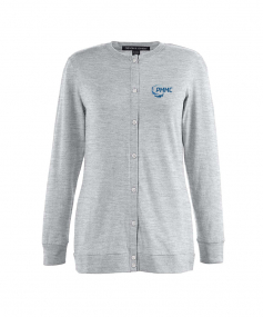 5 oz., 58% cotton, 39% modal, 3% spandex jersey; Soft modal blend drapes without clinging; Dyed-to-match grosgrain ribbon accents placket; Dura-Pearl buttons ideally spaced to avoid unflattering gaps; Banded rib knit cuffs and bottom hem; Longer 27" length (size medium) is ideal for wearing open or closed